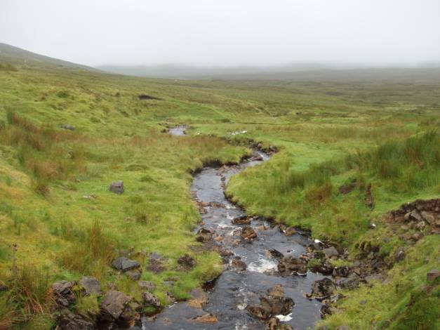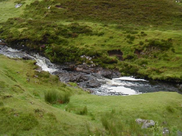 Here, the stream which tumbled down the fall, moved a bit more serenely down the gentle valley.