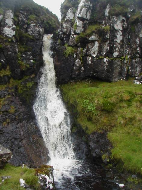 In places, the ground had been washed away from under the grassy turf. These turfs, completely saturated, dripped streams of water downwards. – But there were also genuine waterfalls.