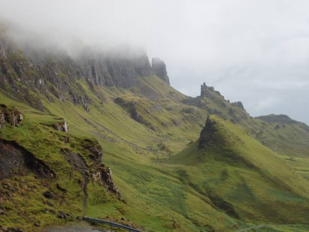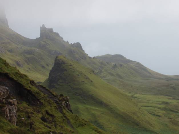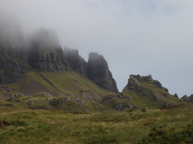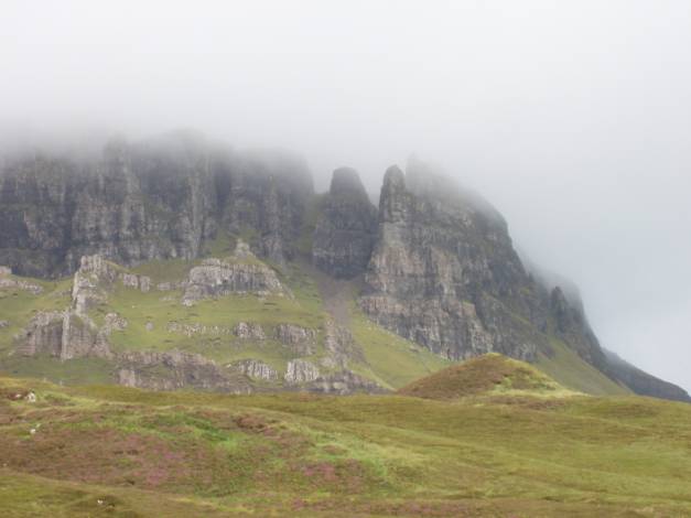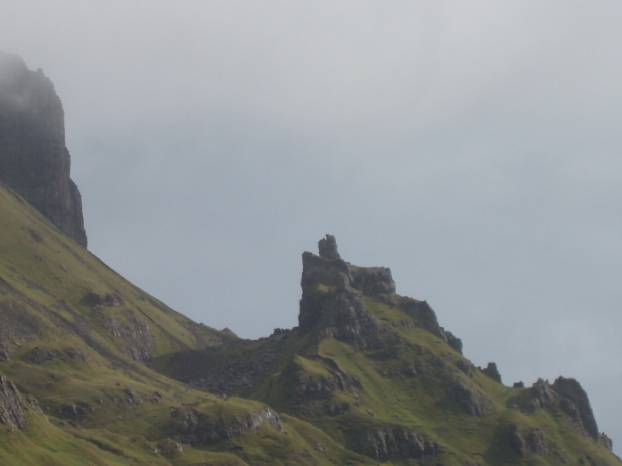 We spent time hoping the low cloud would clear to reveal the full extent of the higher Quiraing to the left. It remained like the picture below – almost there, but not quite.