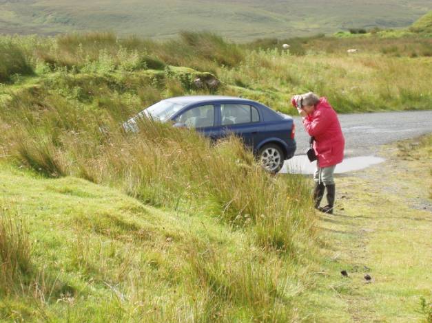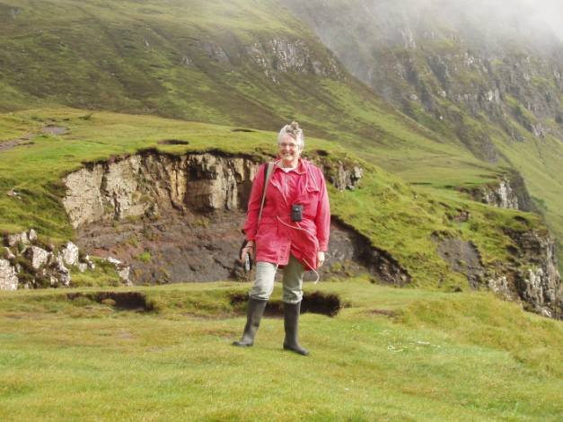 We stopped at a viewpoint where some of the Quiraing was visible. There’s interesting geology of course with volcanic basalt protruding through the softer (but still rock hard) underlying limestone.
