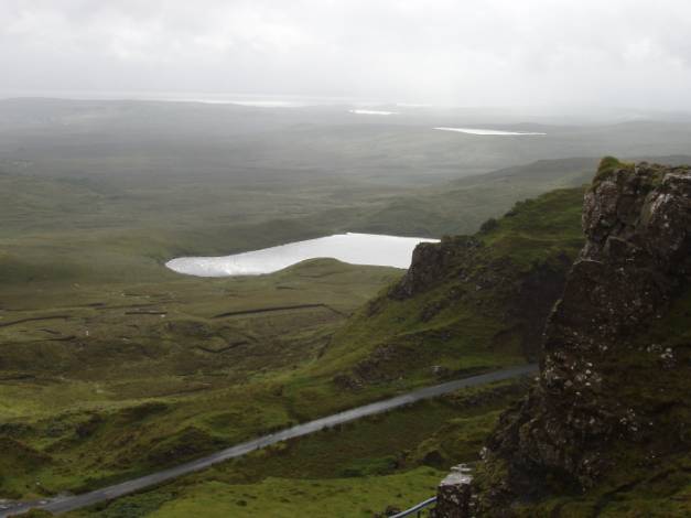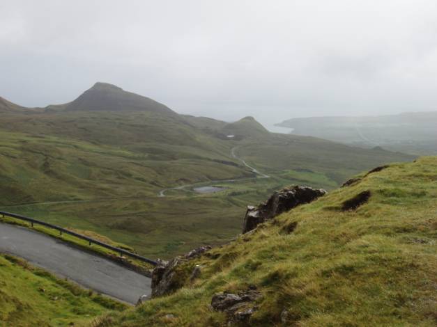 Here we see the road continuing out to the east coast of Skye. Lakes looked to have ben strewn randomly over the flatter lands.