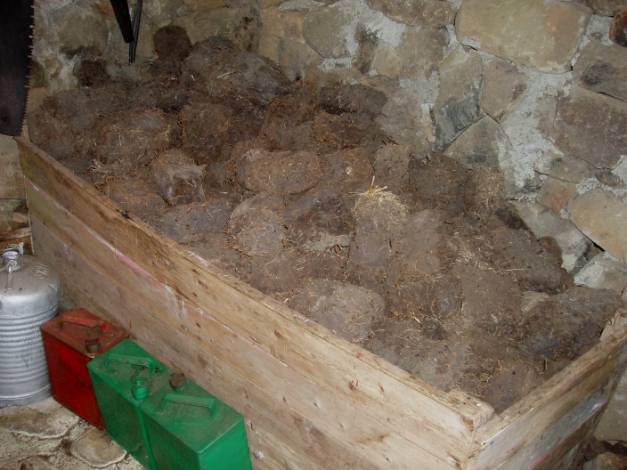This was his box of peat along with cans of paraffin to get a furnace going.