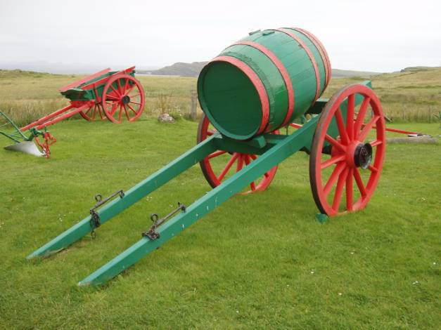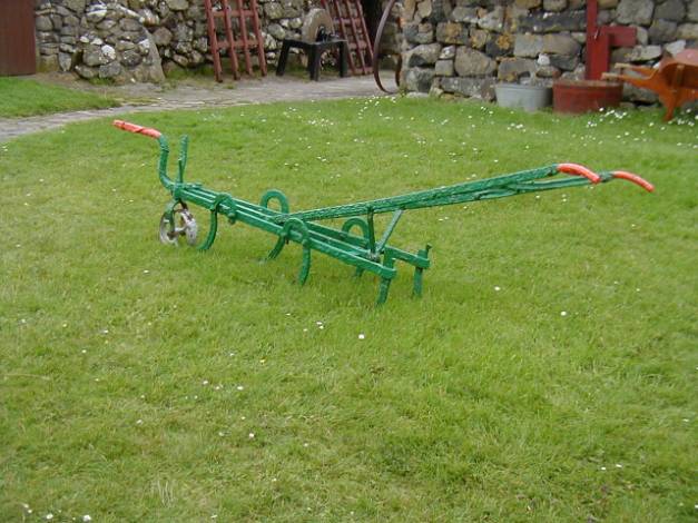 A wagon, a seed drill, a grass cutter and scarifiers of a type I don’t know – all on the edge of the sea.