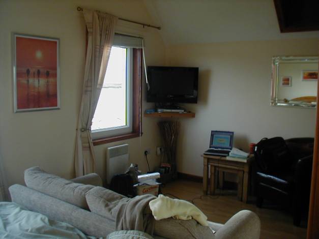 The sitting area looked at a big flat screen telly and the view over ‘Swan Loch’