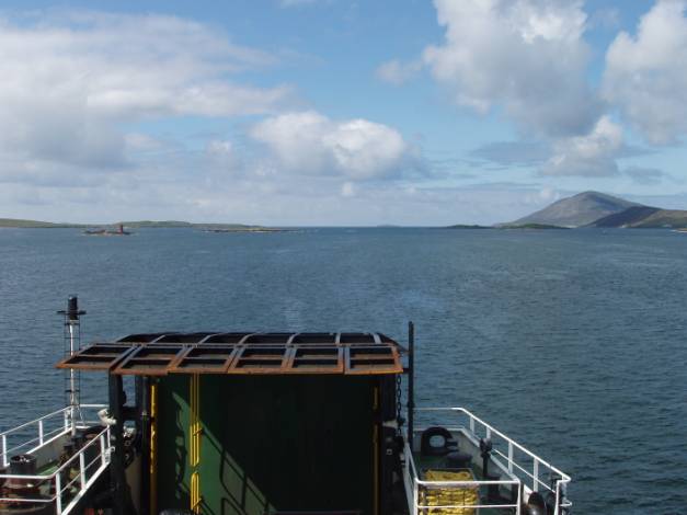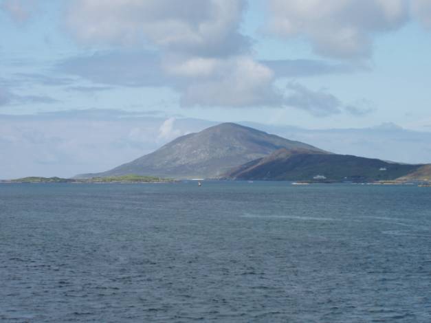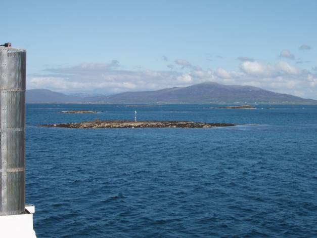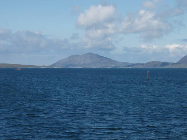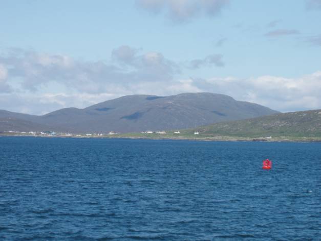 From Berneray to Leverburgh on Harris is about 5 miles, if you manage to hitch a lift on a passing crow. By ferry, it is much further and for your money you get an hour of wonderful cruising. It is rather like a ski slalom as the boat weaves between the red and green buoys and around the innumerable islands and islets between Berneray and Harris.