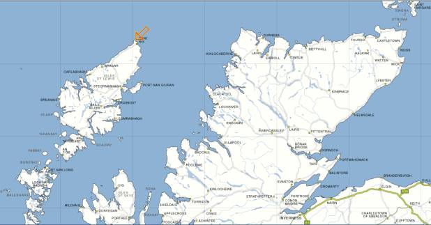 Last time I had a fairly close up map. This time I’m showing the arrowed Butt of Lewis in context.