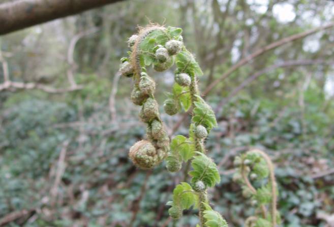 The tops of the growing ferns (if that is what they are) looked like seahorses.