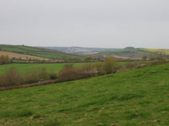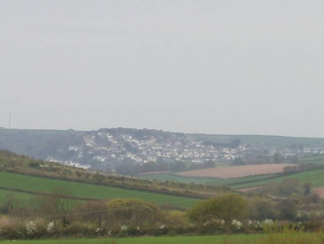 After quite a walk – now on the steep uphill, we were probably not much more than a quarter of a mile from our tent. In the centre background we can see Kingsbridge, sprawling up over its hillside.