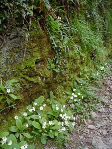 Primroses there were, aplenty and also the big leaves that might struggle to get light as the leaves grew on the tree canopy up above.