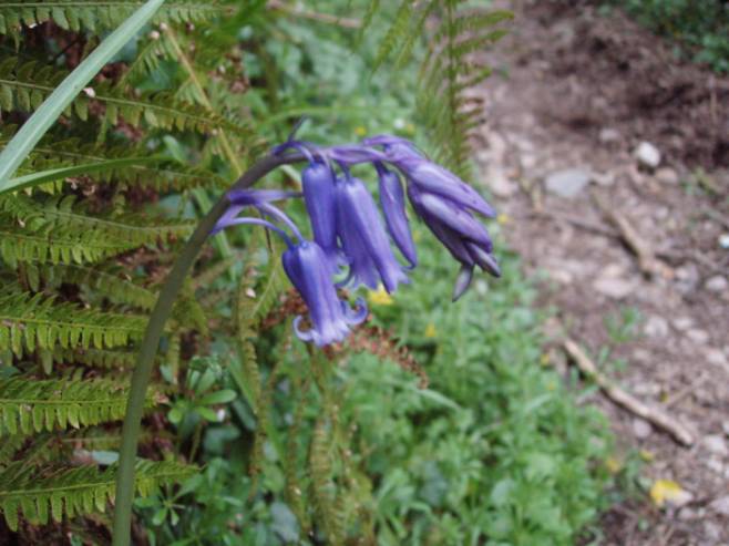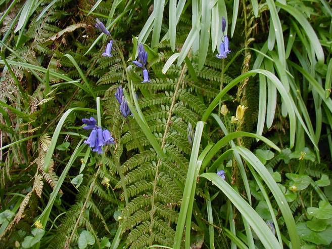 Bluebells jostled for space with bracken.