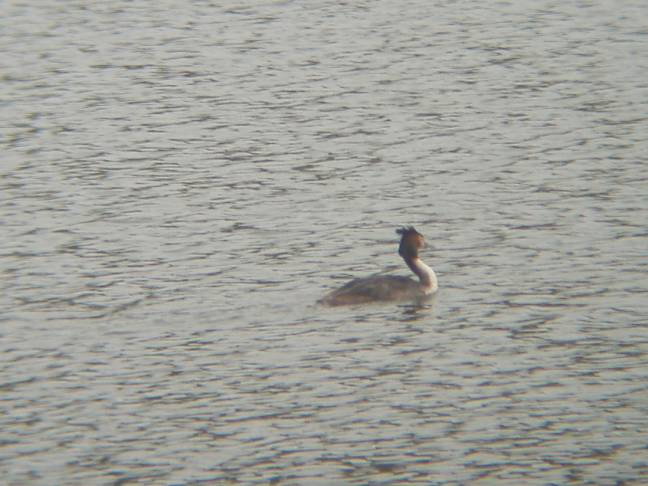 That one, also binoculared (I just hold binoculars in front of camera) is a crested grebe. What lovely birds they are.