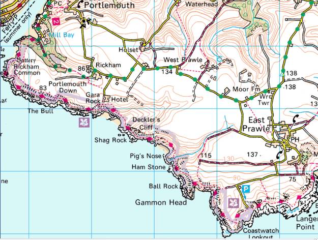After a leisurely lunch back at the tent we decided to take a look at Prawle Point. This is Devon’s most southerly point as shown on the map. The esrtuary, at the northwest corner of the map has Salcombe on the other side