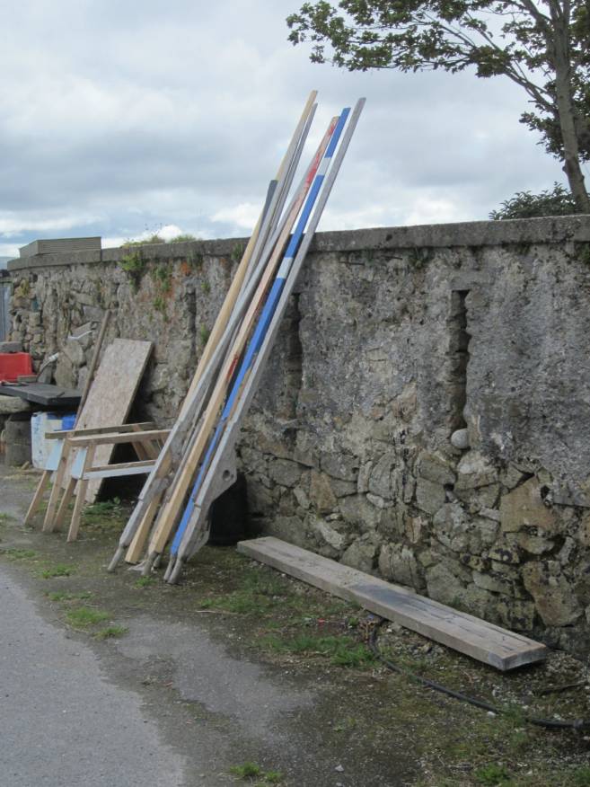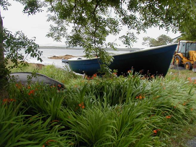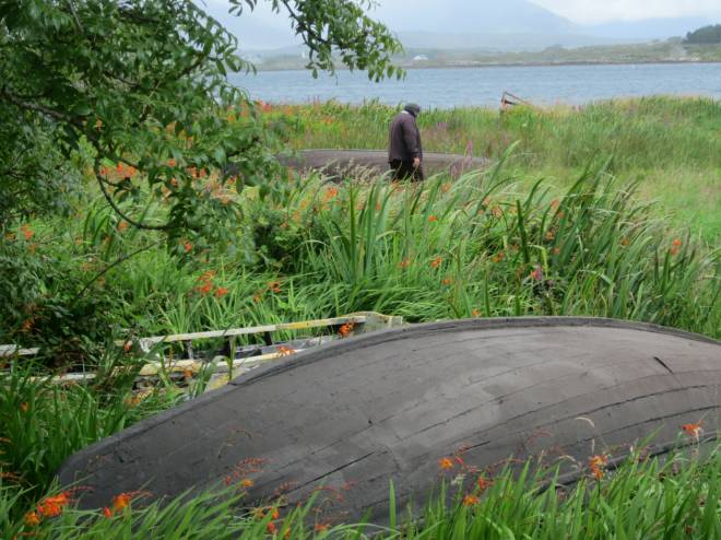Here, a fisherman wends his way between overturned Curraghs. Oh yes, the montbretia grew here too.