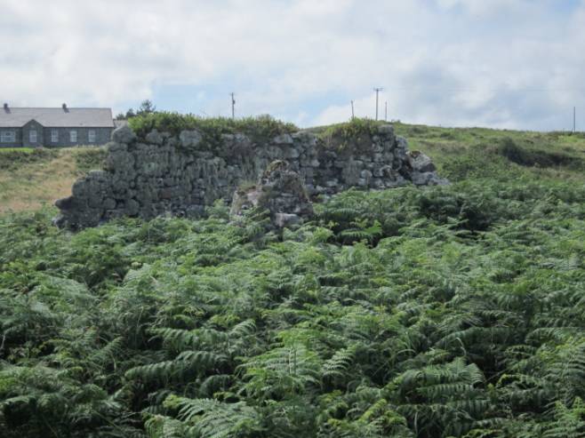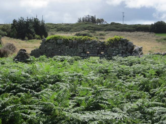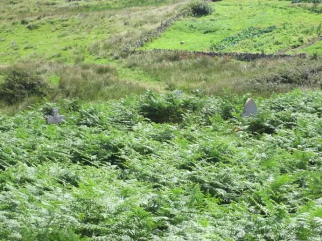We arrived at the ruins of a church and a bracken filled churchyard.