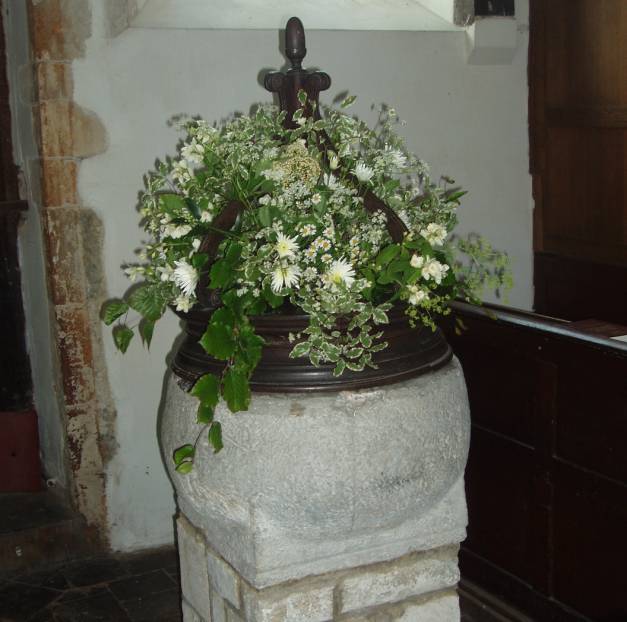 Bonnington Font – probably rarely used so an ideal spot for floral art. We think there must have been a wedding the previous weekend and I’m sure Bonnington is seen as an ideal and romantic spot for such services.