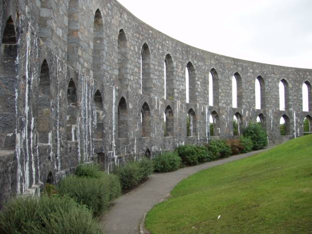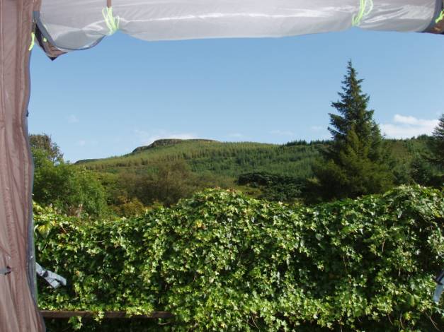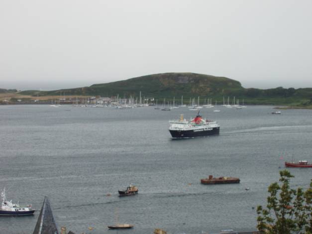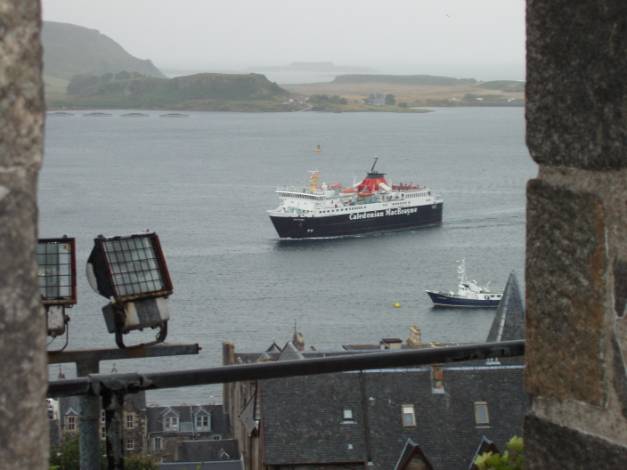 The view from the tent was fantastic with its blue sky over the hills. What better, we thought, than to pop into Oban and climb up the hill to McCaig’s Tower, and relax, watching the shipping in the harbour, as the sun went down.