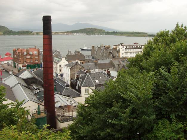 From a point on the long flight of steps we could look over the local distillery, across the water to Kerrera and beyond to Mull.