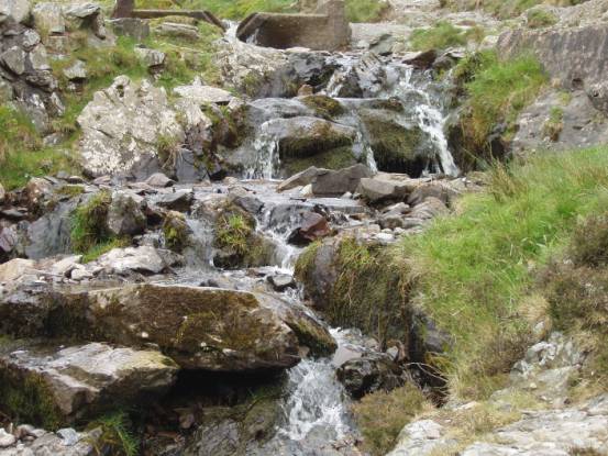Part of the valley has scree slopes and near here we had to cross a small stream that tumbled down a side valley and joined our one.