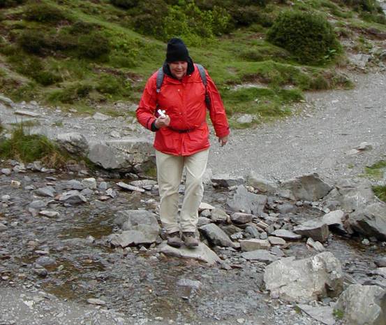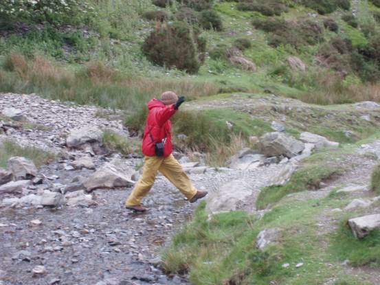 There’s Sue making it across with dry feet. Rog ponders on the next move.